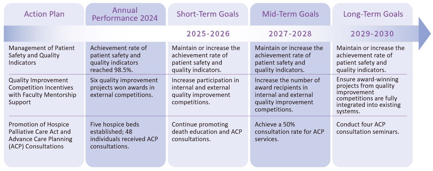 FJUH is committed to fostering a medical environment that combines holistic care with excellence in quality. Guided by a patient-centered philosophy, the hospital continuously promotes clinical quality enhancement, interdisciplinary integrated care, and cyclical improvement mechanisms to ensure that healthcare services remain safe, effective, and compassionate.