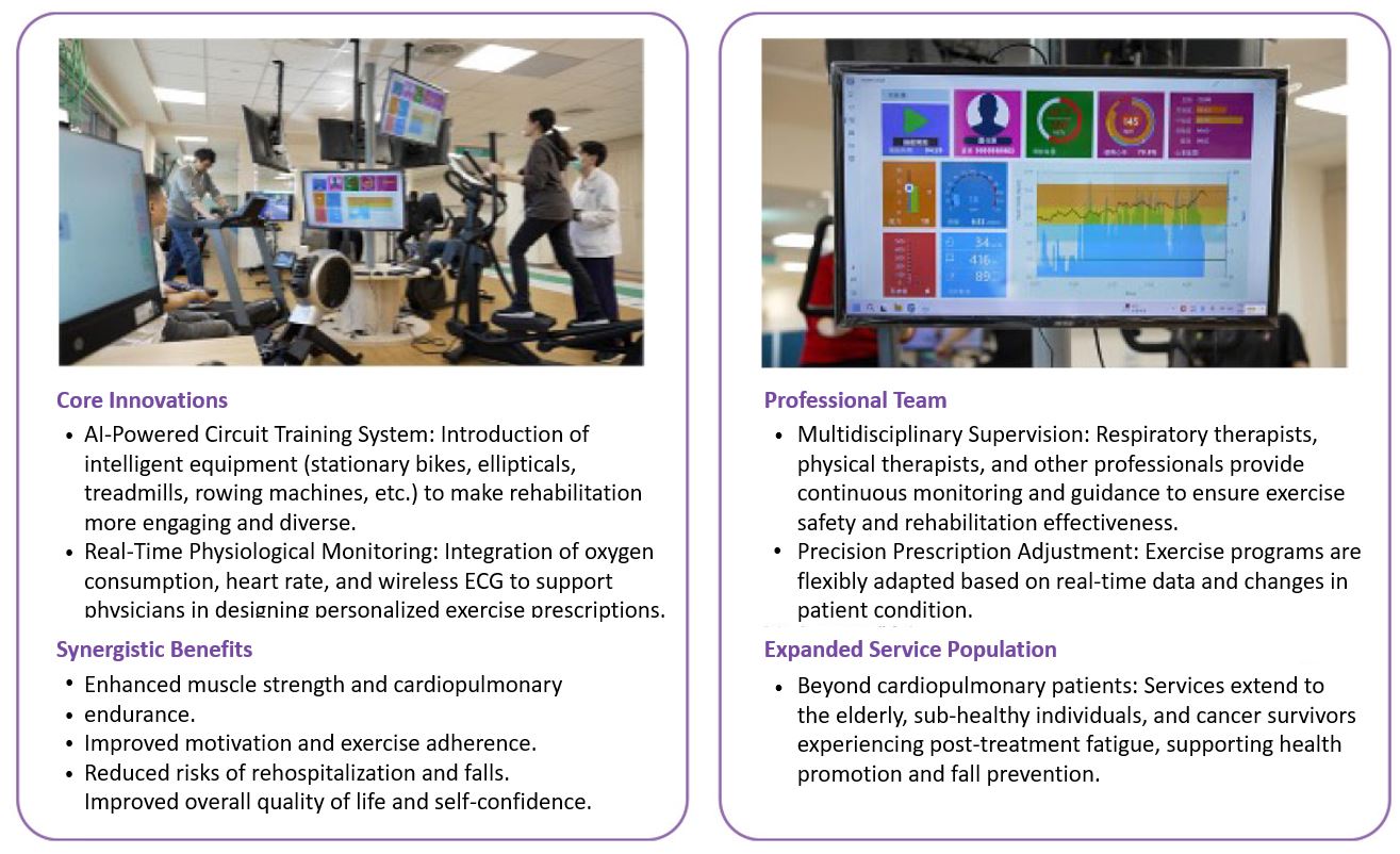 The center has introduced an AI-powered intelligent exercise training system, which integrates real-time electrocardiography with personalized exercise prescriptions. This innovation has created a safe, engaging, and precise model for cardiopulmonary rehabilitation.