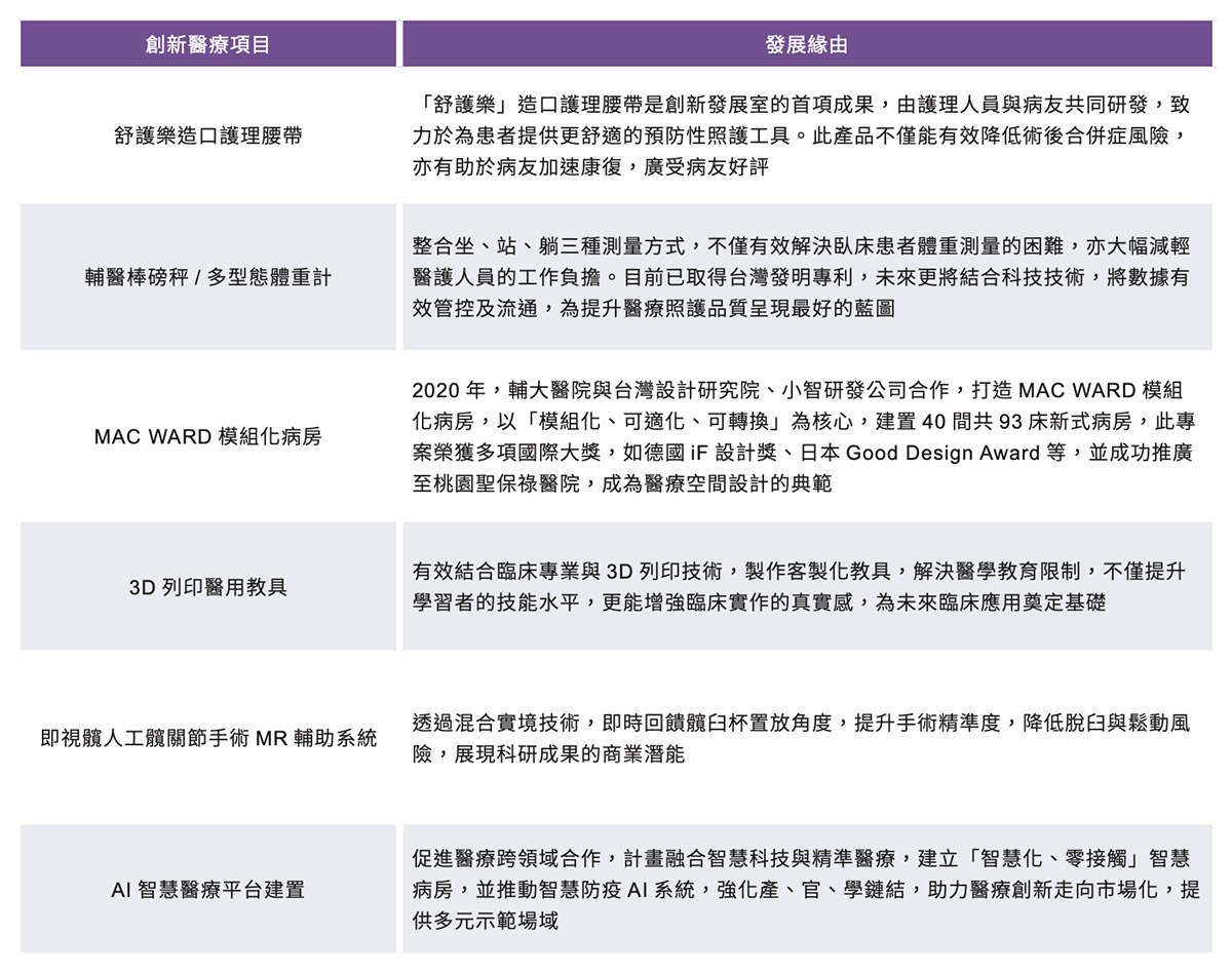 輔大醫院骨科團隊自醫院創立之初,結合2017台北世大運醫療經驗,整合輔仁大學體育系、營養科學系、臨床心理系等大學資源,於2019年設立輔大運動醫學中心,成為骨科部的發展特色,其初衷在於提供臺灣的運動醫學與世界接軌的發展,並以天主教敬天愛人的出發點,發揚運動家精神,故以骨科為核心,發展最精確的即時診斷,整合運動物理治療、頂尖運動防護訓練以及營養、心理諮詢,並搭配各種訓練與治療儀器,為民眾提供全方位的全人照護。