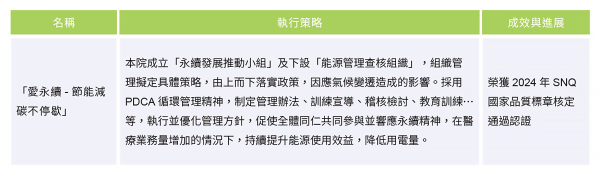 50001能源管理系統建置及外部顧問輔導,建立院區系統化的能源管理流程。